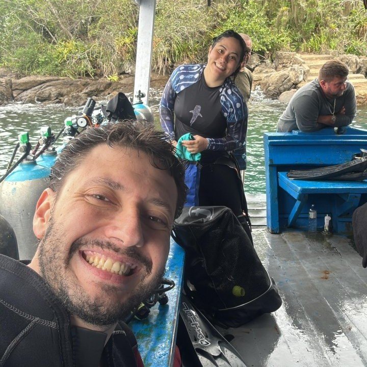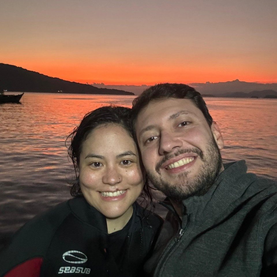 Descobrimos que dividimos mais do que o amor pelo carnaval: somos apaixonados por gastronomia, drinks e aventuras — inclusive debaixo d’água. O mergulho se tornou um hobby em comum e acabou marcando nossa história de forma única: o pedido de casamento veio no fundo do mar, durante uma viagem inesquecível ao México.