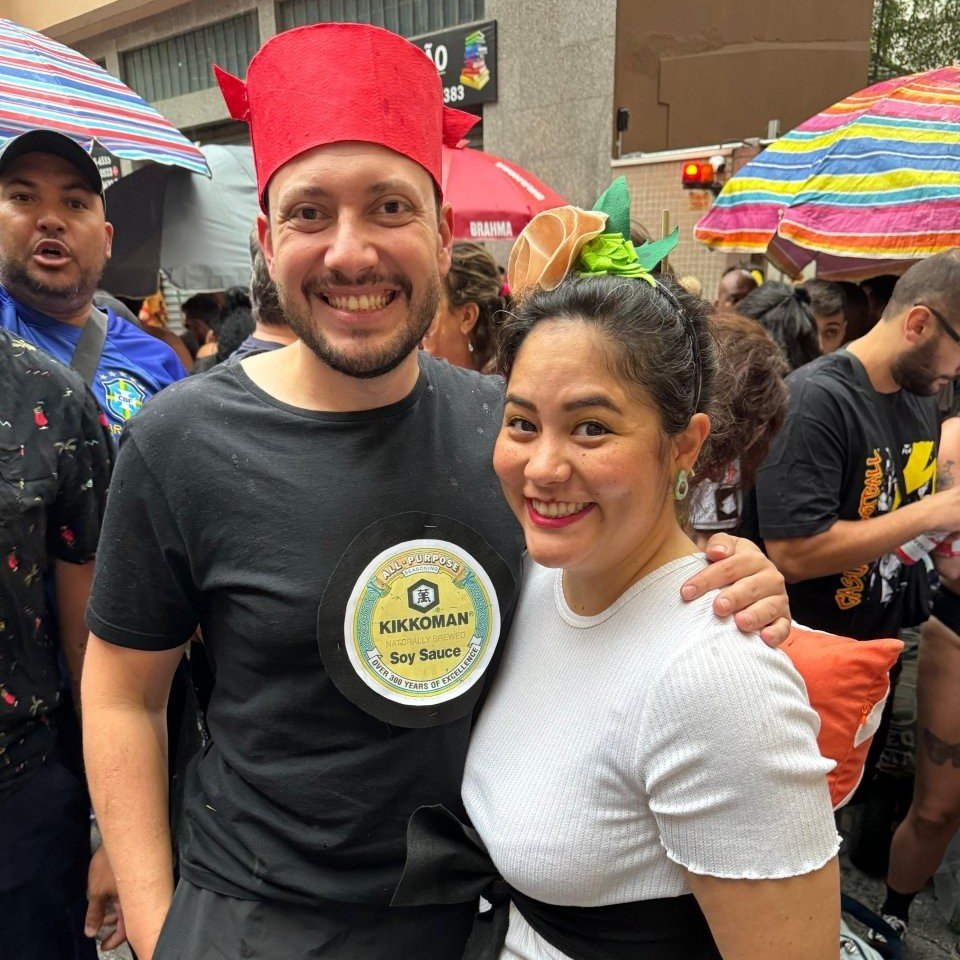 Foi só em 2023, em pleno bloquinho de carnaval em São Paulo, que a fagulha finalmente acendeu. Estávamos solteiros, livres e com o coração aberto. Ali, no meio da folia, começou uma história que rapidamente virou parceria, riso fácil e muito amor.